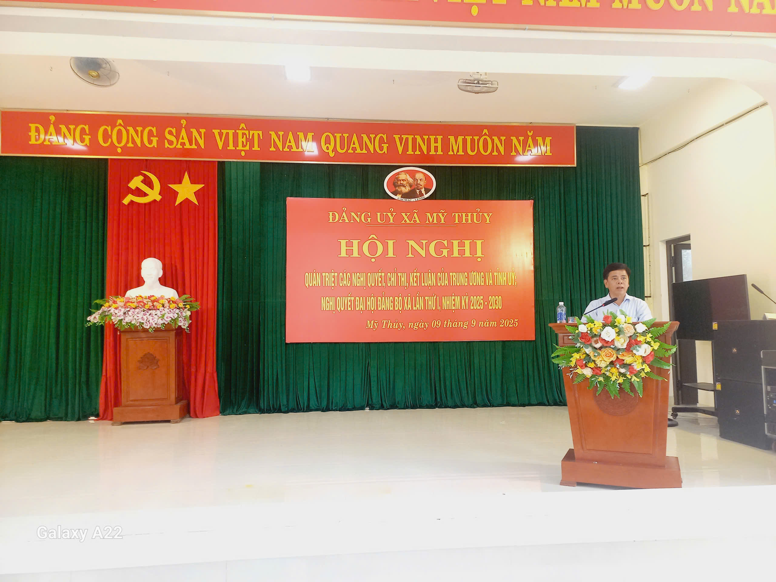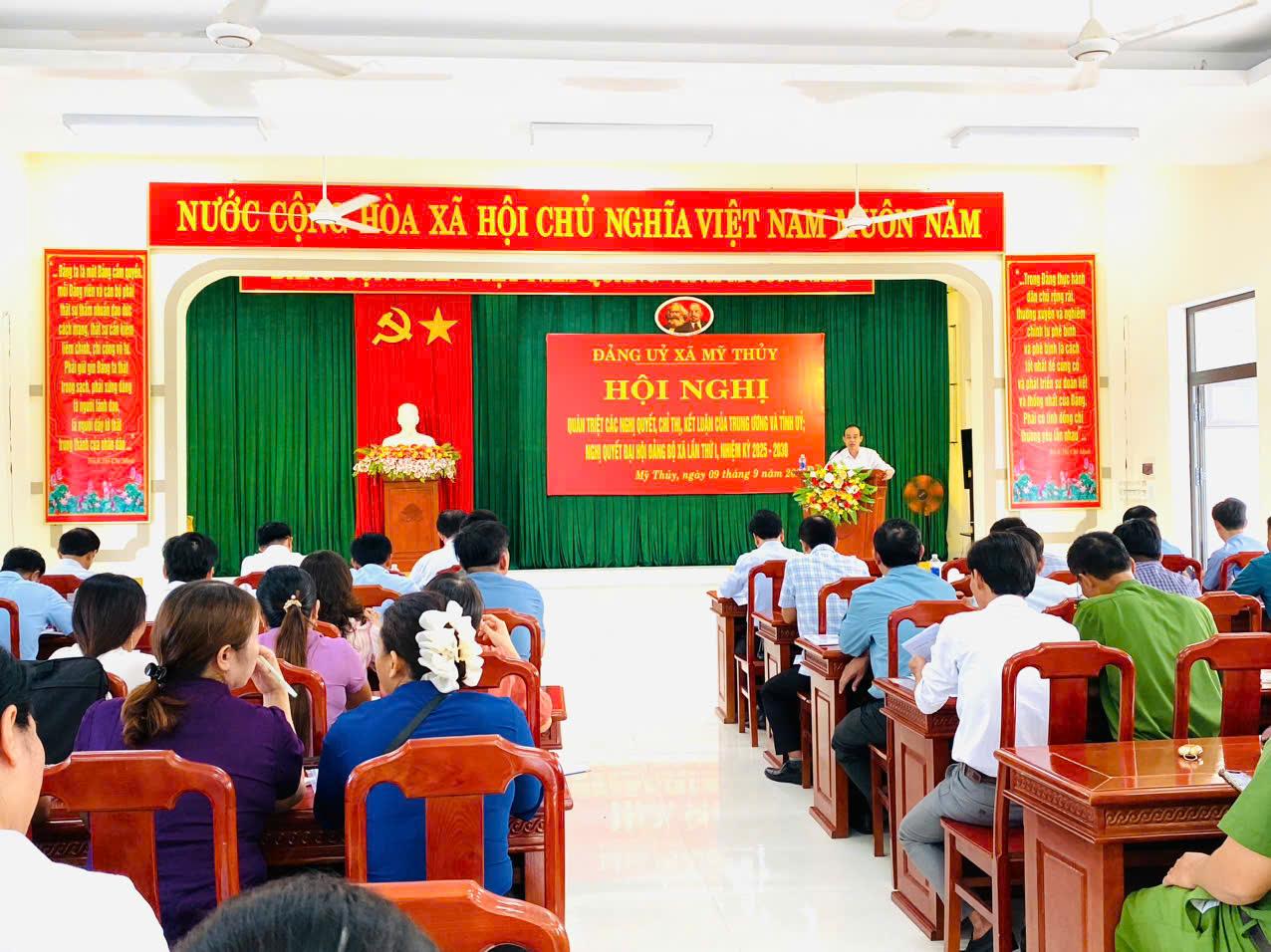 Ngày 09/9/2025, Đảng ủy xã Mỹ Thủy tổ chức Hội nghị quán triệt nghị quyết, chỉ thị, kết luận của trung ương và Tỉnh ủy và Nghị quyết Đại hội Đảng bộ xã Mỹ Thủy lần thứ I, nhiệm kỳ 2025-2030