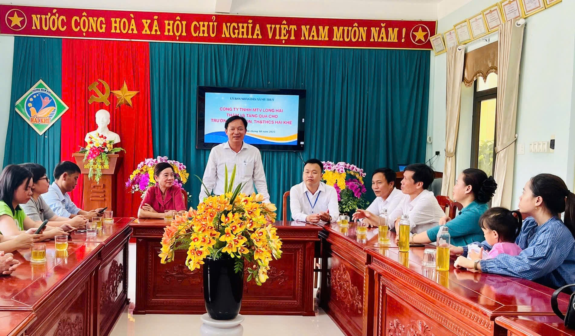 UBND XÃ MỸ THUỶ PHỐI HỢP VỚI CÔNG TY TNHH MTV LONG HẢI THĂM VÀ TẶNG QUÀ CÁC TRƯỜNG HỌC TRÊN ĐỊA BÀN XÃ.