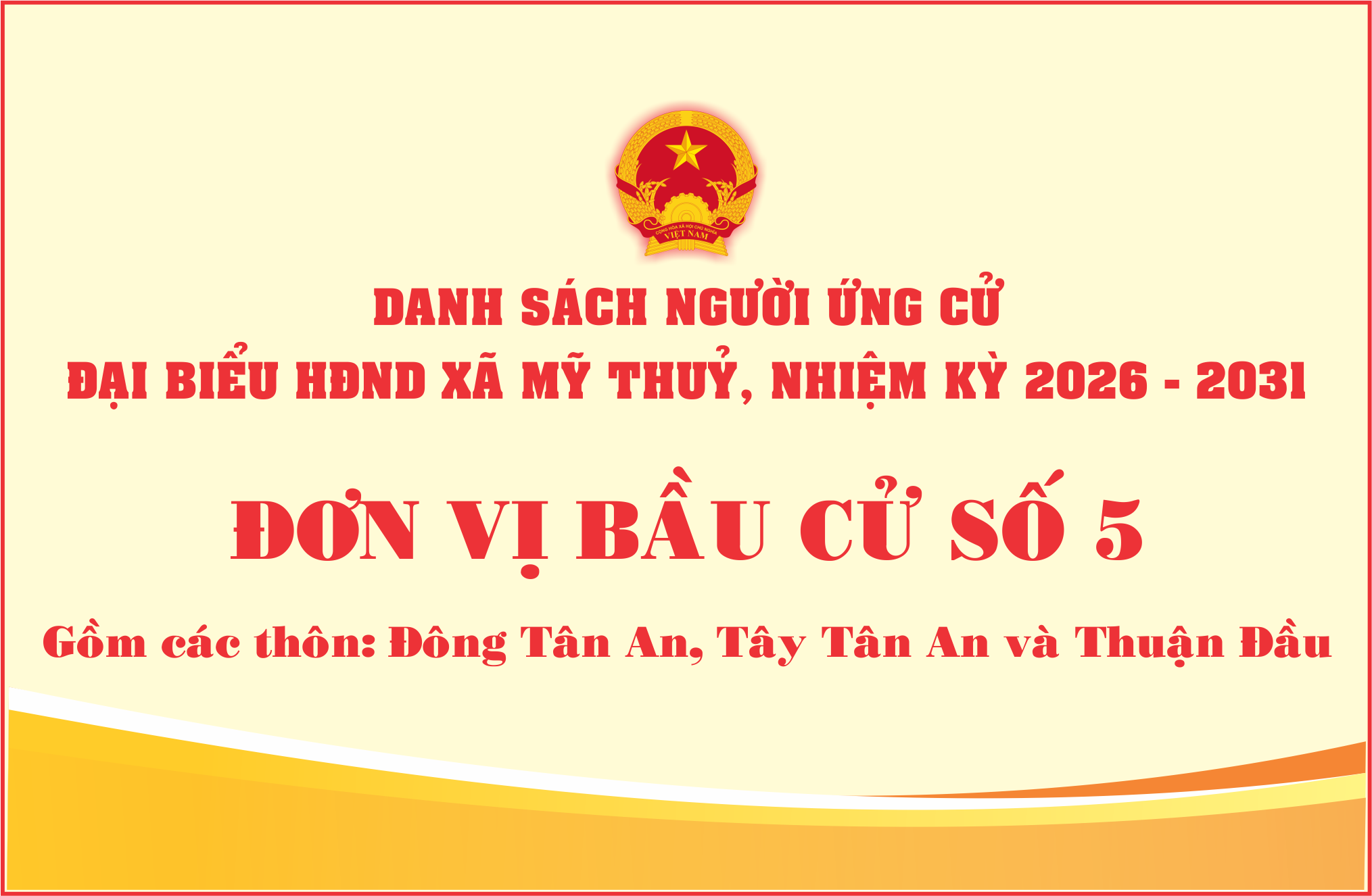 DANH SÁCH NHỮNG NGƯỜI ỨNG ĐẠI BIỂU HĐND XÃ MỸ THUỶ, NHIỆM KỲ 2026 - 2031 TẠI ĐƠN VỊ BẦU CỬ SỐ 5