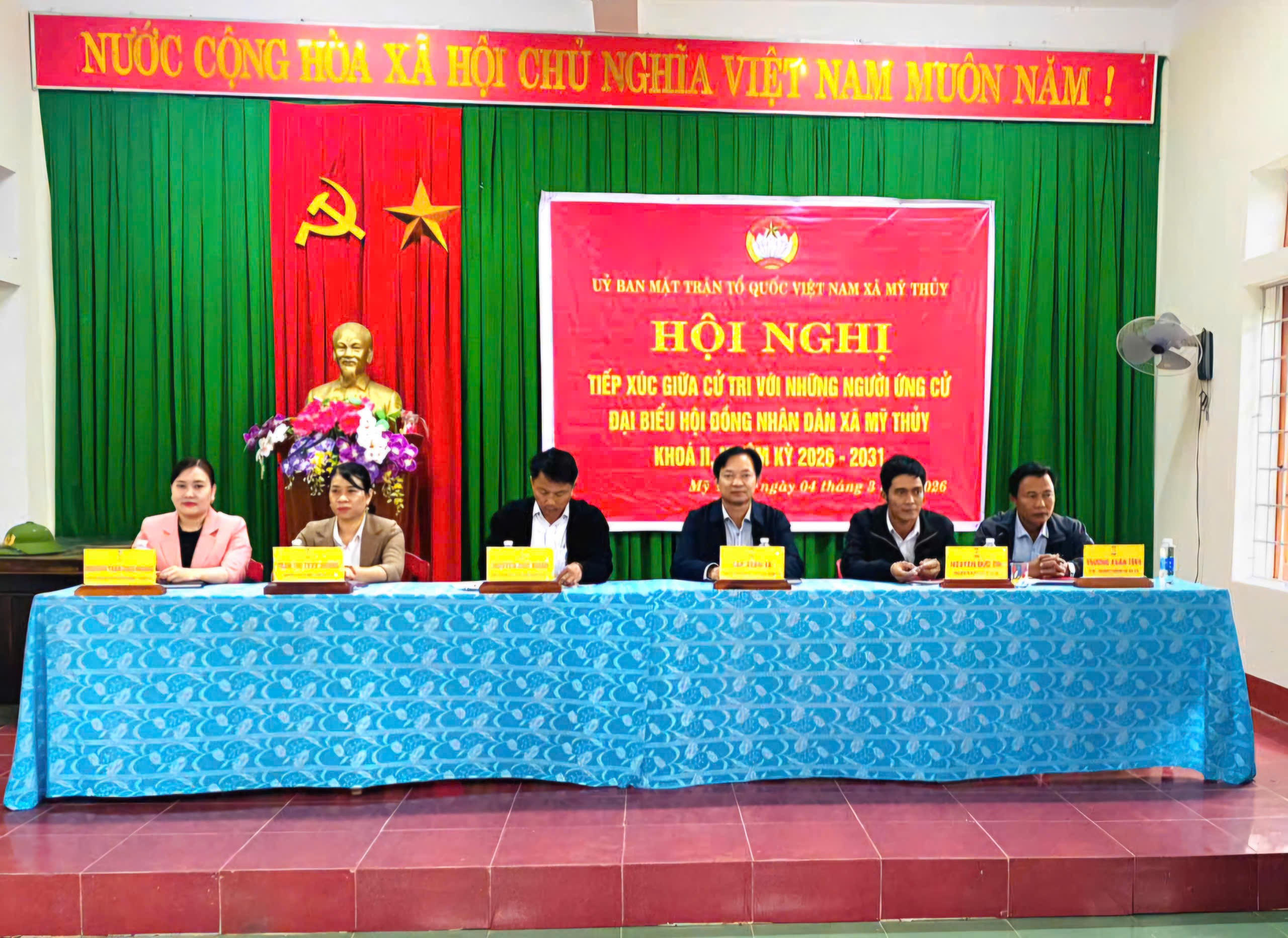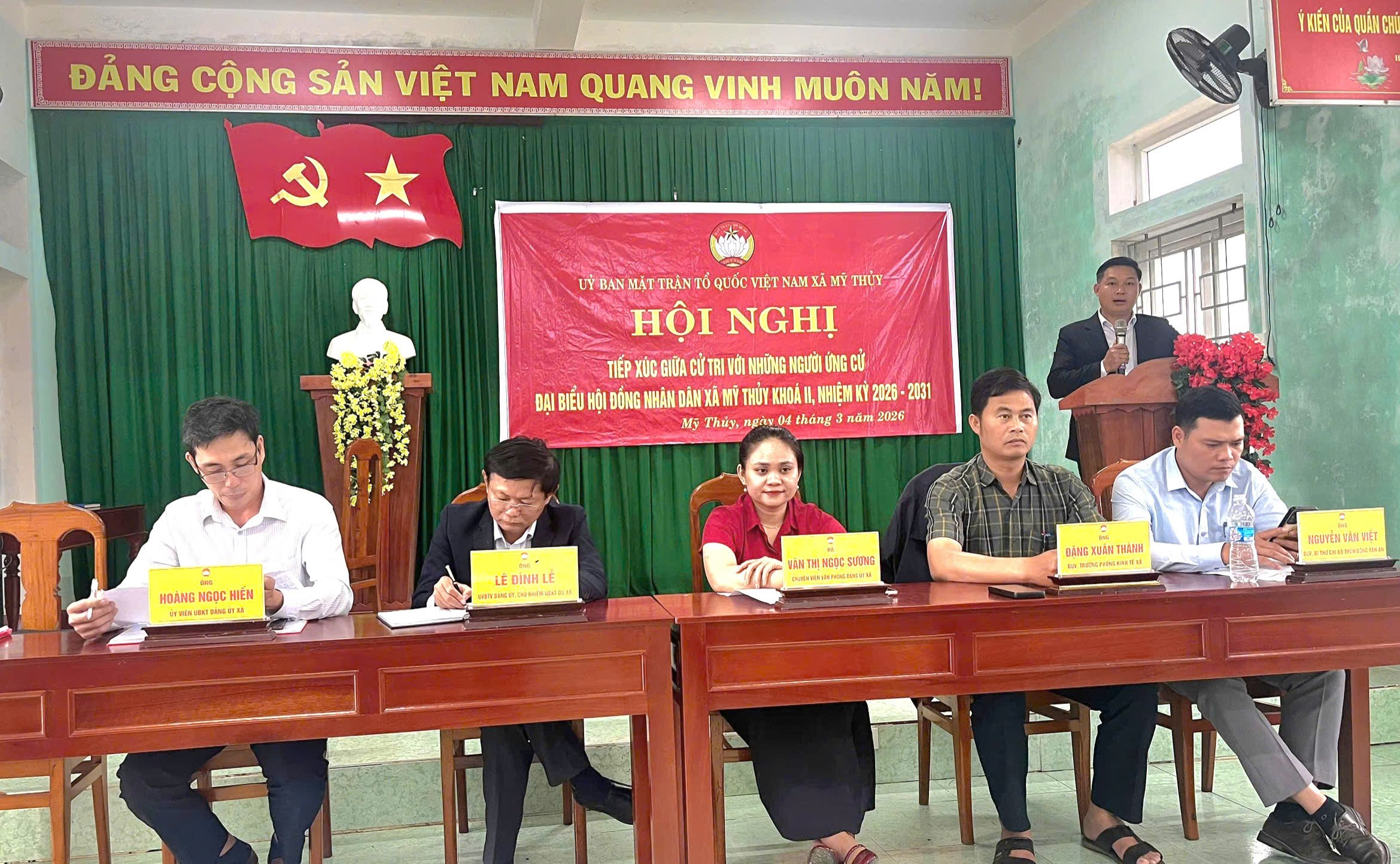 Thực hiện Luật Bầu cử đại biểu Quốc hội và Đại biểu HĐND các cấp, Ngày 04/3/2026, Ban thường trực Ủy ban mặt trận Tổ quốc Việt Nam xã Mỹ Thủy tổ chức Hội nghị tiếp xúc cử tri, vận động bầu cử đối với những người ứng cử đại biểu HĐND xã, nhiệm kỳ 2026-2031.